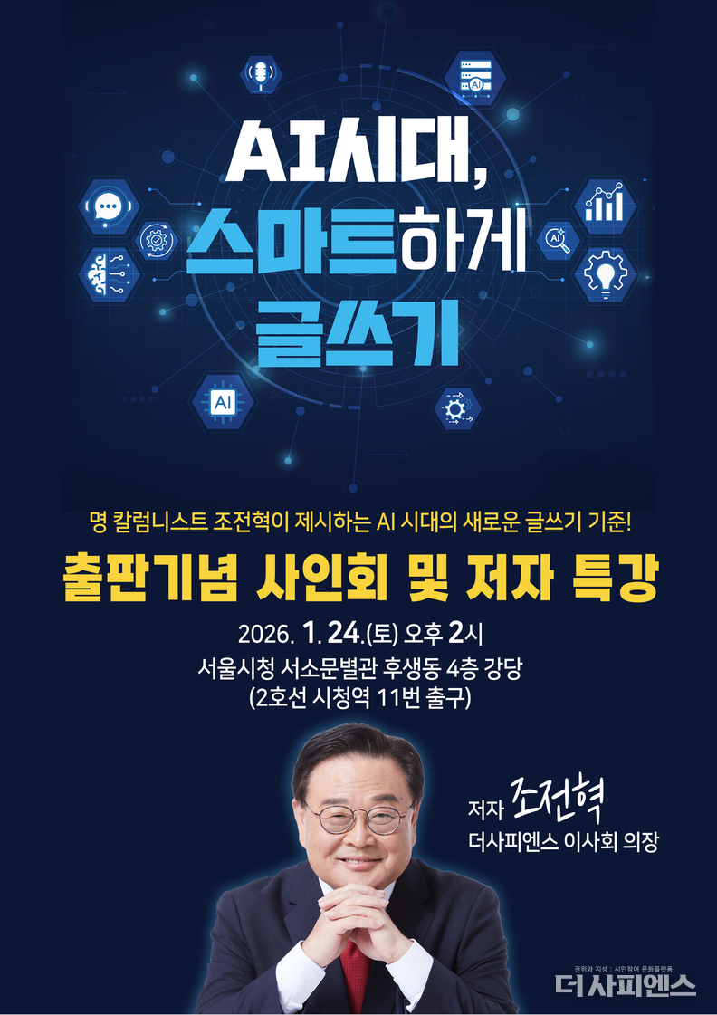 더사피엔스 기자 | 조전혁 더사피엔스 이사회 의장이 신간 『AI시대, 스마트하게 글쓰기』 출간을 기념해 사인회 및 특강을 개최한다.