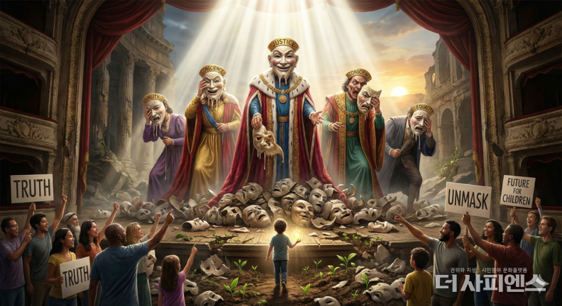 PS: 이 시는 신동엽 시인의 시 '껍데기는 가라'를 AI에게 학습시키고, 신동엽 시의 DNA를 접목해 우리 시대 '조국'으로 상징되는 위선의 코드를 비판하는 저항시로 창작한 것임.