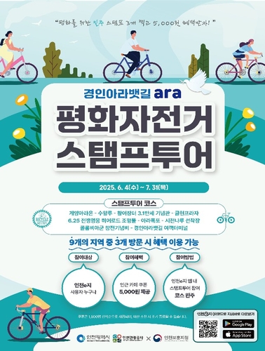 인천광역시(시장 유정복)와 인천관광공사는 6월 호국보훈의 달을 맞아 6월 4일부터 7월 31일까지 '인천 평화 자전거 스탬프투어'를 운영한다고 밝혔다.